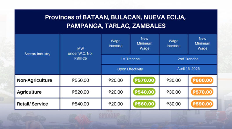 CITY OF SAN FERNANDO, Pampanga — Minimum wage earners in Central Luzon will receive an increase in their daily pay