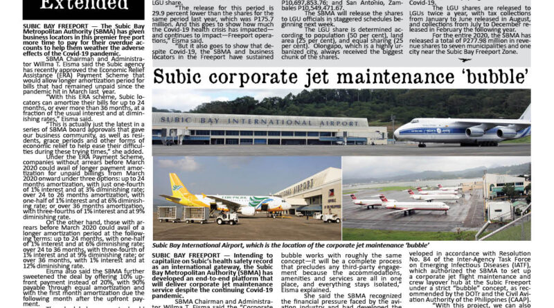 SUBIC BAY FREEPORT — The Subic Bay Metropolitan Authority (SBMA) has given business locators in this premier free port more
