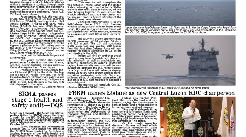 Around Central Luzon Around Subic Bay Latest News SBNV Subic Bay News Vol 18 N0 41 November 1, 2025November 7, 2025 Vic Vizcocho 0 Comments Read more